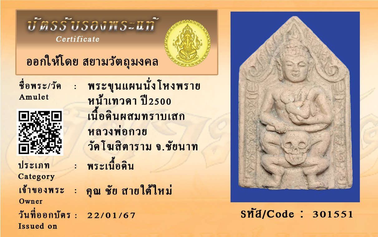 รหัสสินค้า : 301551 พระขุนแผนนั่งโหงพราย หน้าเทวดา ปี2500 เนื้อดินผสมทราบเสก หลวงพ่อกวย วัดโฆสิตาราม จ.ชัยนาท