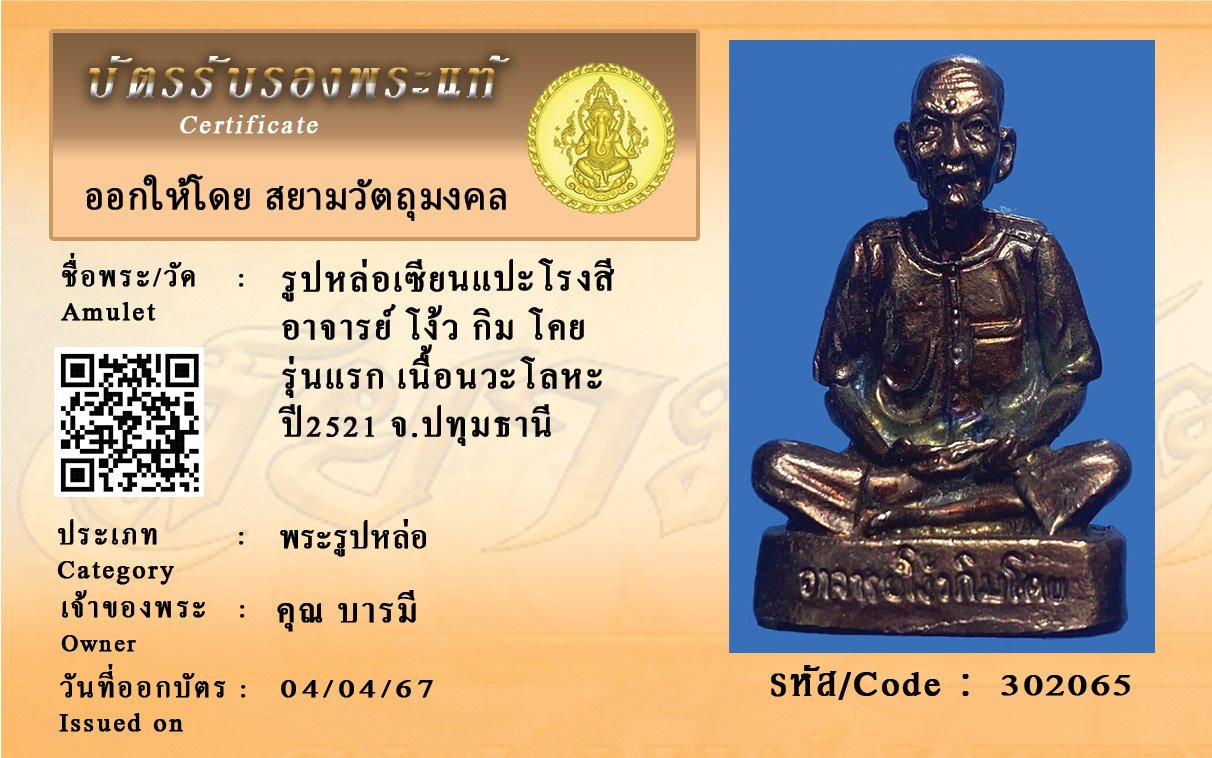 รหัสสินค้า : 302065 รูปหล่อเซียนแปะโรงสี อาจารย์ โง้ว กิม โคย รุ่นแรก เนื้อนวะโลหะ ปี2521 จ.ปทุมธานี