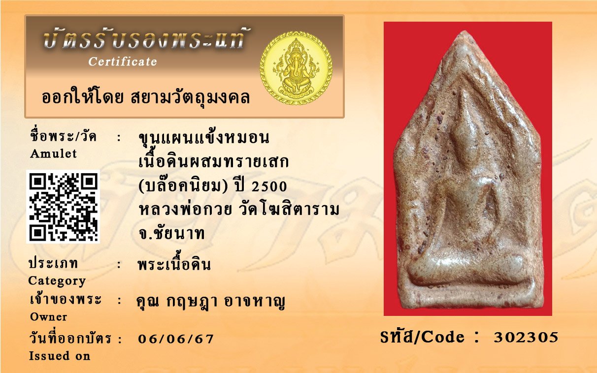 รหัสสินค้า : 302305 ขุนแผนแข้งหมอน เนื้อดินผสมทรายเสก (บล๊อคนิยม) ปี 2500 หลวงพ่อกวย วัดโฆสิตาราม จ.ชัยนาท