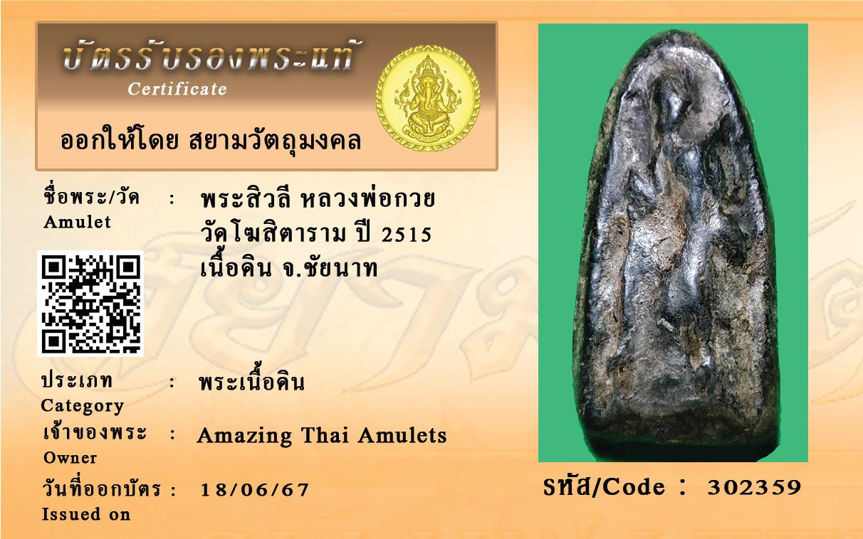 รหัสสินค้า : 302359 พระสิวลี หลวงพ่อกวย วัดโฆสิตาราม ปี 2515 เนื้อดิน จ.ชัยนาท