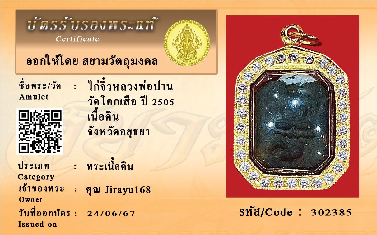 รหัสสินค้า : 302385 ไก่จิ๋วหลวงพ่อปาน วัดโคกเสือ ปี 2505 เนื้อดิน จังหวัดอยุธยา
