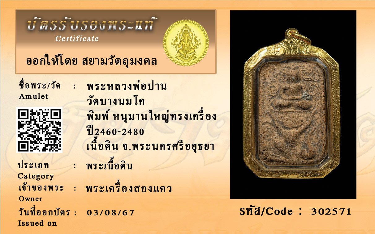 รหัสสินค้า : 302571 พระหลวงพ่อปาน วัดบางนมโค พิมพ์ หนุมานใหญ่ทรงเครื่อง ปี2460-2480 เนื้อดิน จ.พระนครศรีอยุธยา