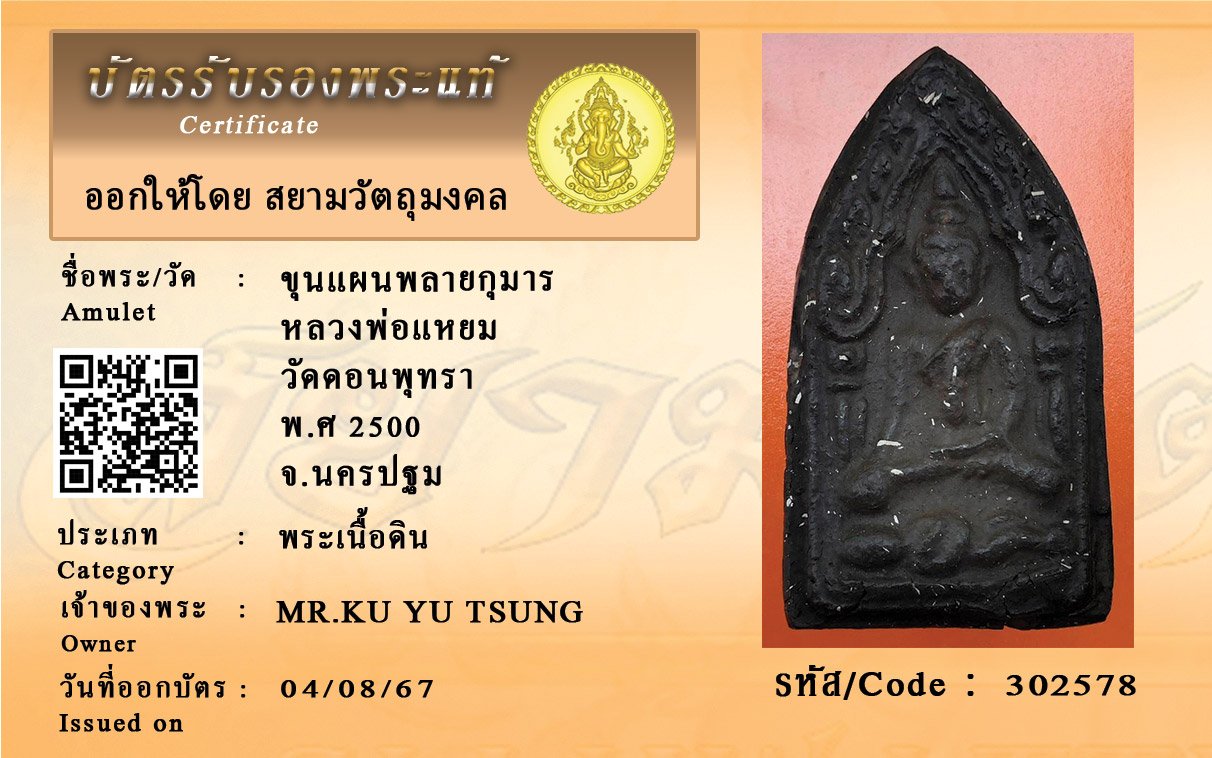 รหัสสินค้า : 302578 ขุนแผนพลายกุมาร หลวงพ่อแหยม วัดดอนพุทรา พ.ศ 2500 จ.นครปฐม