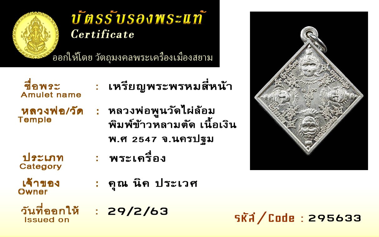 ค้นหาพระ พร้อมบัตรรับรองพระแท้