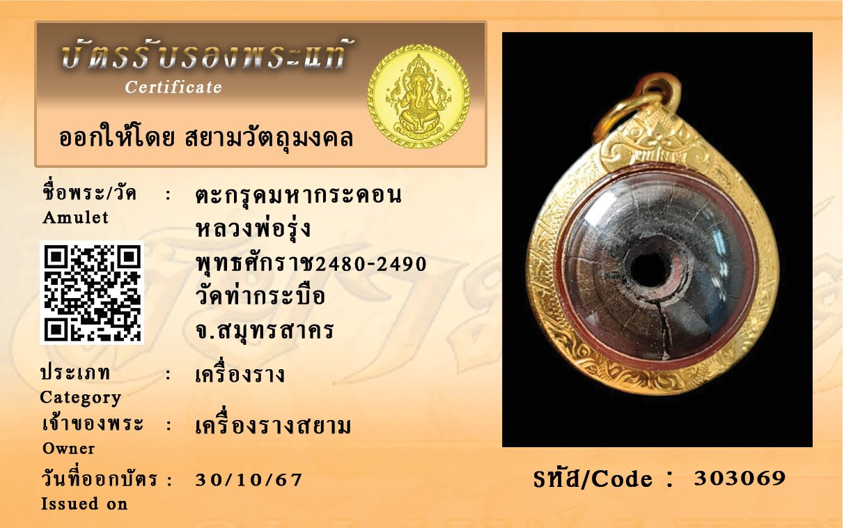 รหัสสินค้า : 303069 ตะกรุดมหากระดอน หลวงพ่อรุ่ง พุทธศักราช2480-2490 วัดท่ากระบือ จ.สมุทรสาคร