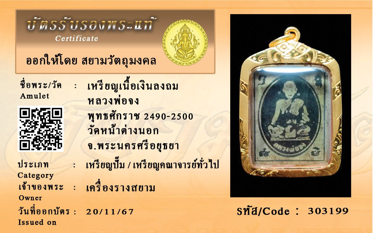 รหัสสินค้า : 303199 เหรียญเนื้อเงินลงถม หลวงพ่อจง พุทธศักราช 2490-2500 วัดหน้าต่างนอก จ.พระนครศรีอยุธยา