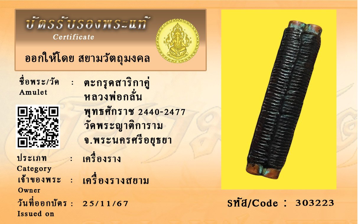 รหัสสินค้า : 303223 ตะกรุดสาริกาคู่ หลวงพ่อกลั่น พุทธศักราช 2440-2477 วัดพระญาติการาม จ.พระนครศรีอยุธยา