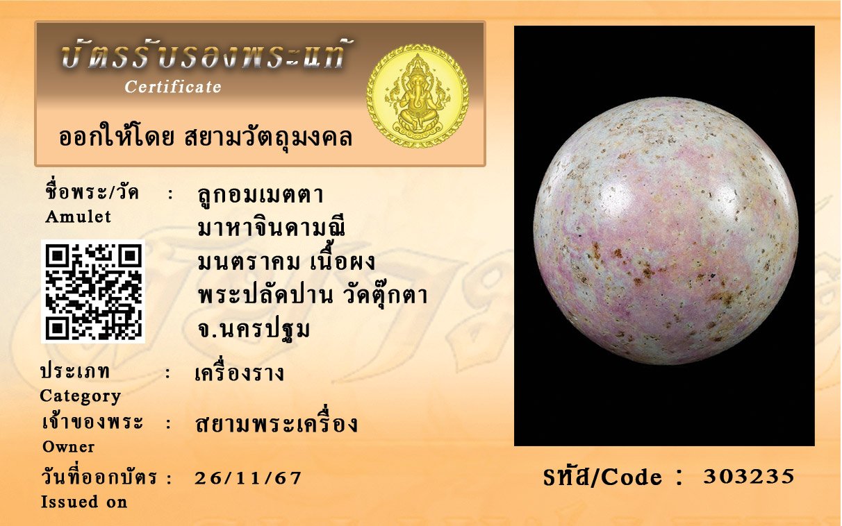 รหัสสินค้า : 303235 ลูกอมเมตตา มาหาจินดามณี มนตราคม เนื้อผง พระปลัดปาน วัดตุ๊กตา จ.นครปฐม
