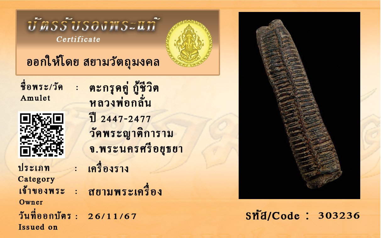 รหัสสินค้า : 303236 ตะกรุดคู่ กู้ชีวิต หลวงพ่อกลั่น ปี 2447-2477 วัดพระญาติการาม จ.พระนครศรีอยุธยา