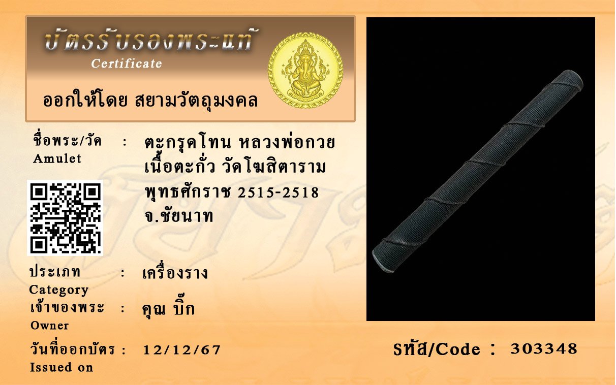 รหัสสินค้า : 303348 ตะกรุดโทน หลวงพ่อกวย เนื้อตะกั่ว วัดโฆสิตาราม พุทธศักราช 2515-2518 จ.ชัยนาท