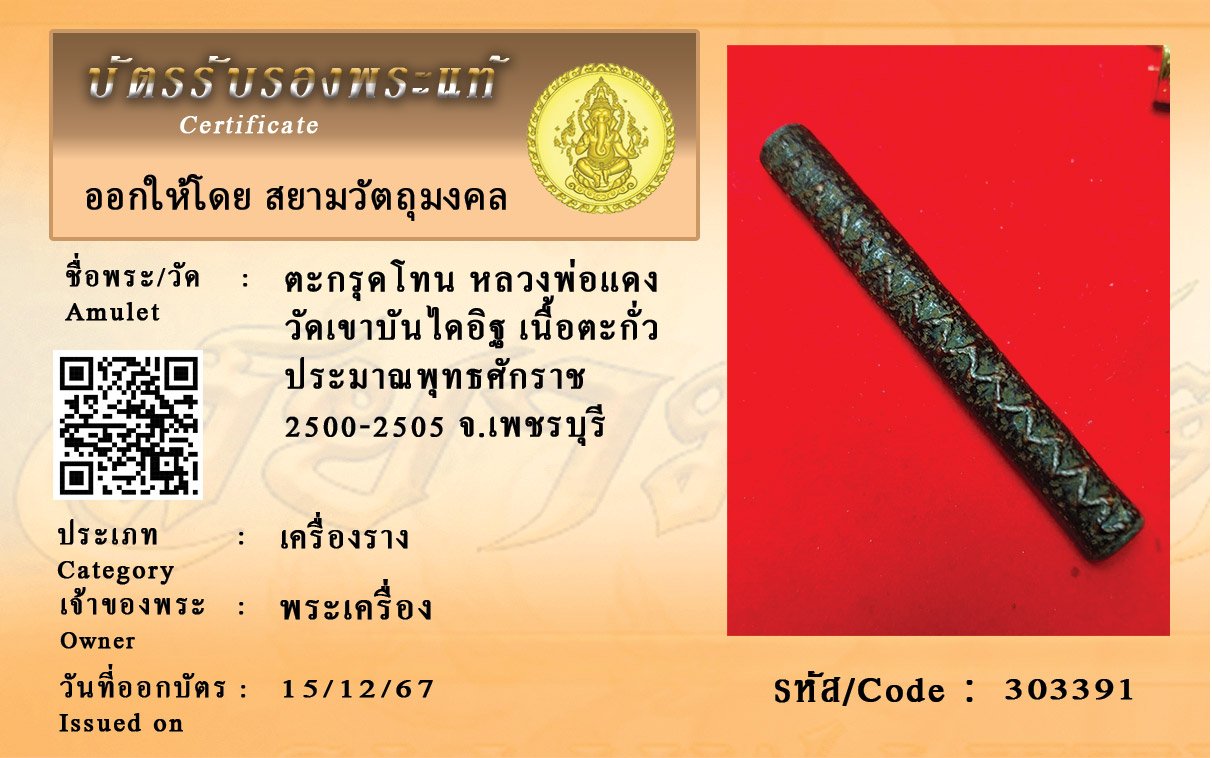 รหัสสินค้า : 303391 ตะกรุดโทน หลวงพ่อแดง วัดเขาบันไดอิฐ เนื้อตะกั่ว ประมาณพุทธศักราช 2500-2505 จ.เพชรบุรี