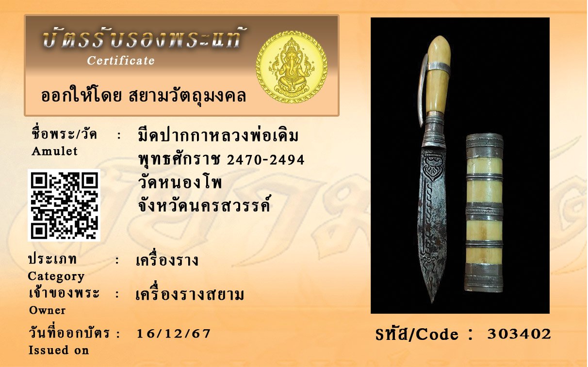 รหัสสินค้า : 303402 มีดปากกาหลวงพ่อเดิม พุทธศักราช 2470-2494 วัดหนองโพ จังหวัดนครสวรรค์