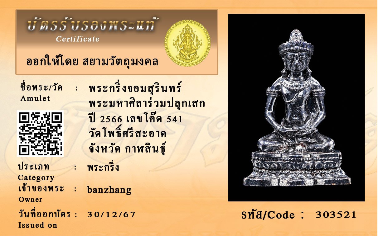 รหัสสินค้า : 303521 พระกริ่งจอมสุรินทร์ พระมหาศิลาร่วมปลุกเสก ปี 2566 เลขโค๊ด 541 วัดโพธิ์ศรีสะอาด จังหวัด กาฬสินธุ์