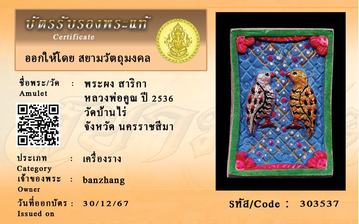 รหัสสินค้า : 303537 พระผง สาริกา หลวงพ่อคูณ ปี 2536 วัดบ้านไร่ จังหวัด นครราชสีมา