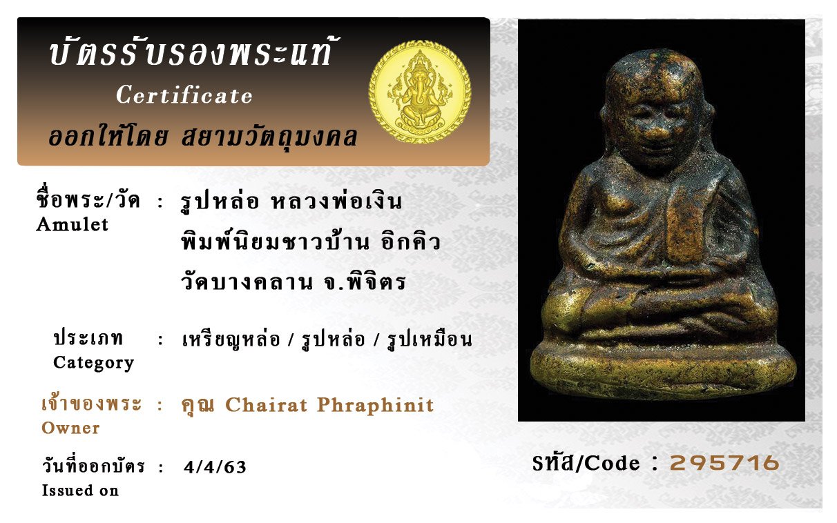 รหัสสินค้า : (295716) รูปหล่อ หลวงพ่อเงินวัดบางคลานพิมพ์นิยมชาวบ้านอิกคิว จ.พิจิตร
