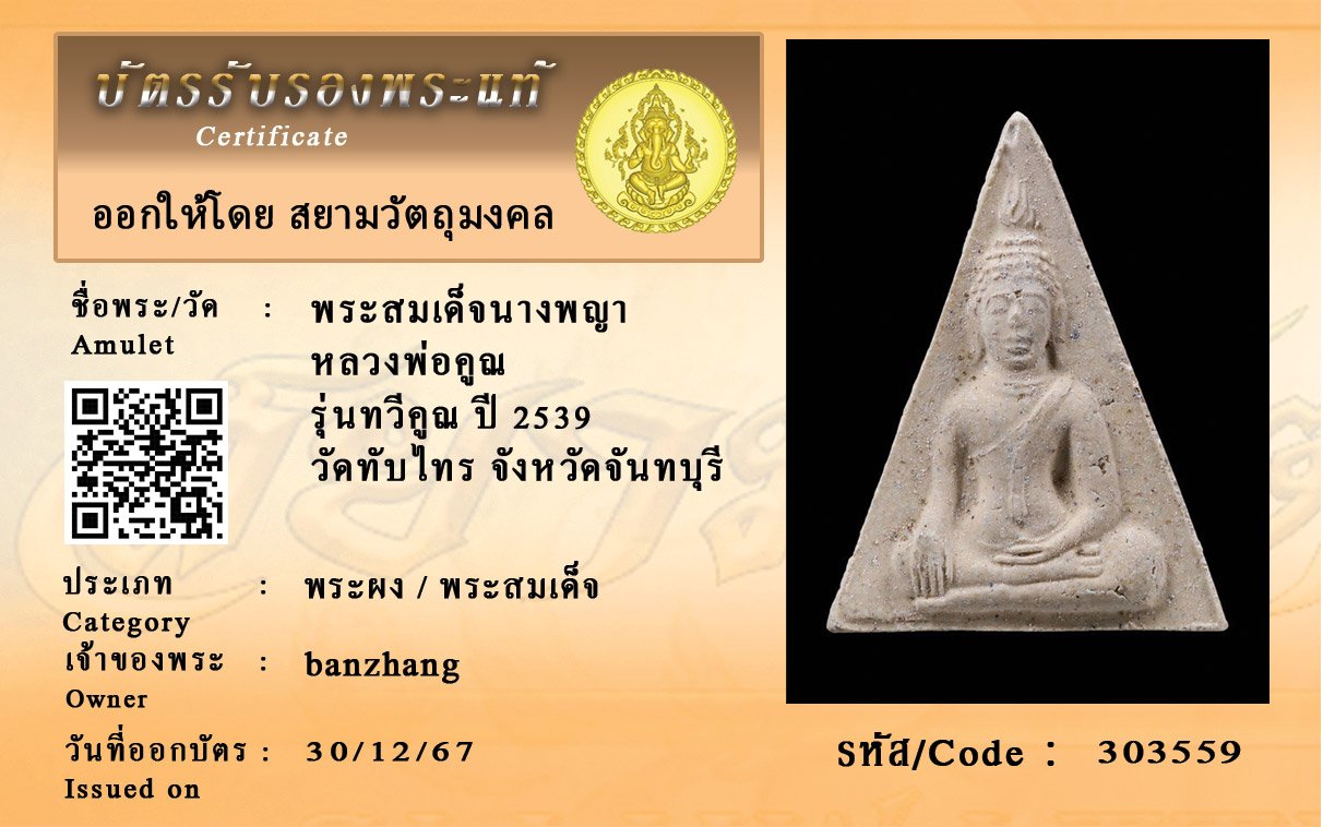 รหัสสินค้า : 303559 พระสมเด็จนางพญา หลวงพ่อคูณ รุ่นทวีคูณ ปี 2539 วัดทับไทร จังหวัดจันทบุรี