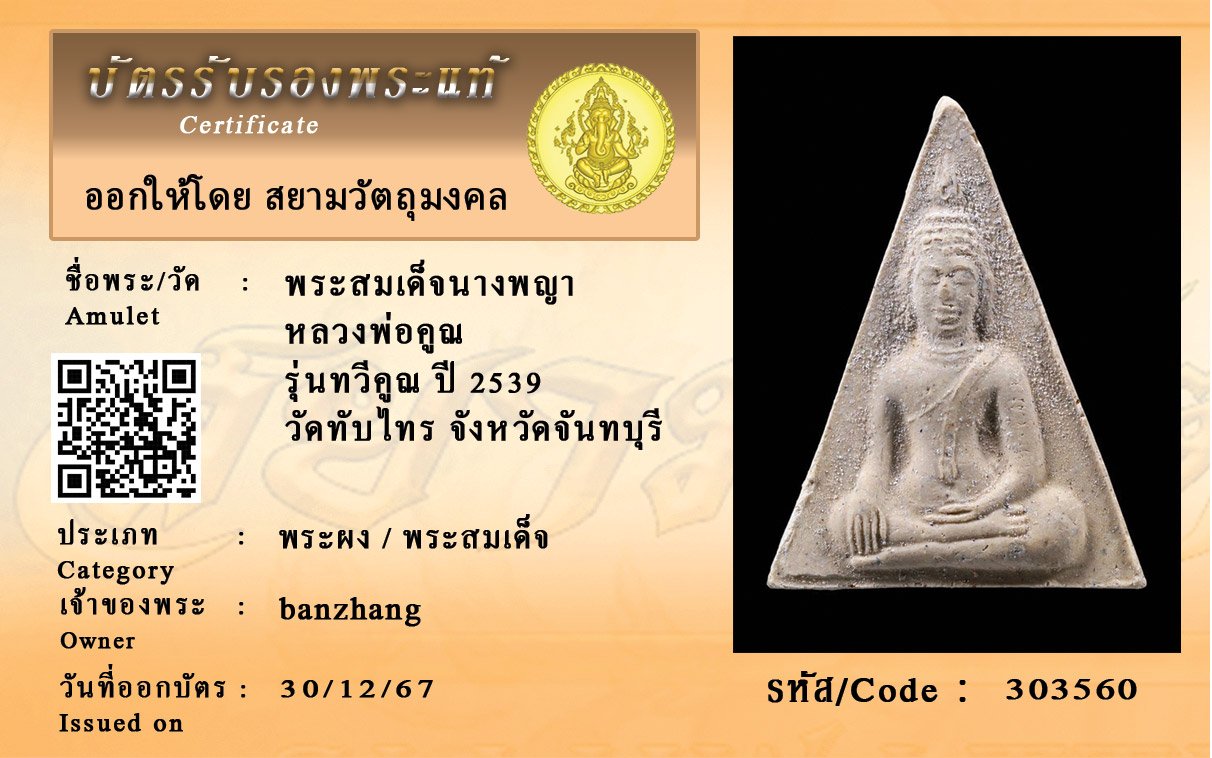 รหัสสินค้า : 303560 พระสมเด็จนางพญา หลวงพ่อคูณ รุ่นทวีคูณ ปี 2539 วัดทับไทร จังหวัดจันทบุรี