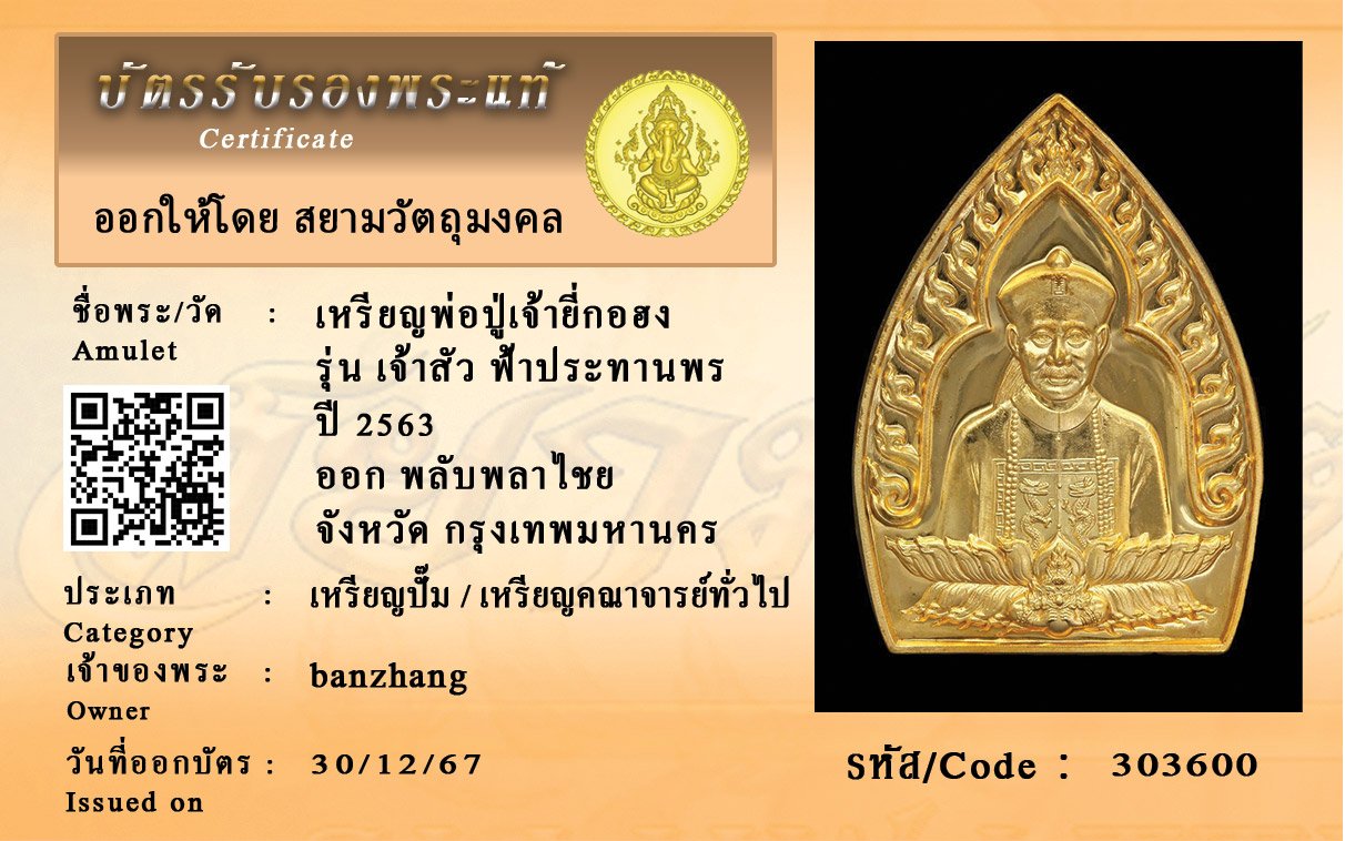 รหัสสินค้า : 303600 เหรียญพ่อปู่เจ้ายี่กอฮง รุ่น เจ้าสัว ฟ้าประทานพร ปี 2563 ออก พลับพลาไชย จังหวัด กรุงเทพมหานคร