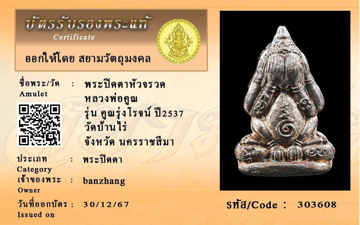 รหัสสินค้า : 303608 พระปิดตาหัวจรวด หลวงพ่อคูณ รุ่น คูณรุ่งโรจน์ ปี2537 วัดบ้านไร่ จังหวัด นครราชสีมา