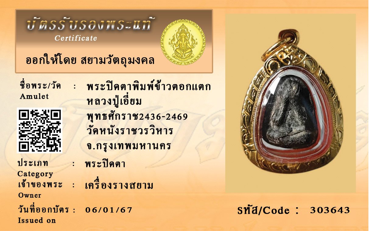 รหัสสินค้า : 303643 พระปิดตาพิมพ์ข้าวตอกแตก หลวงปู่เอี่ยม พุทธศักราช2436-2469 วัดหนังราชวรวิหาร จ.กรุงเทพมหานคร