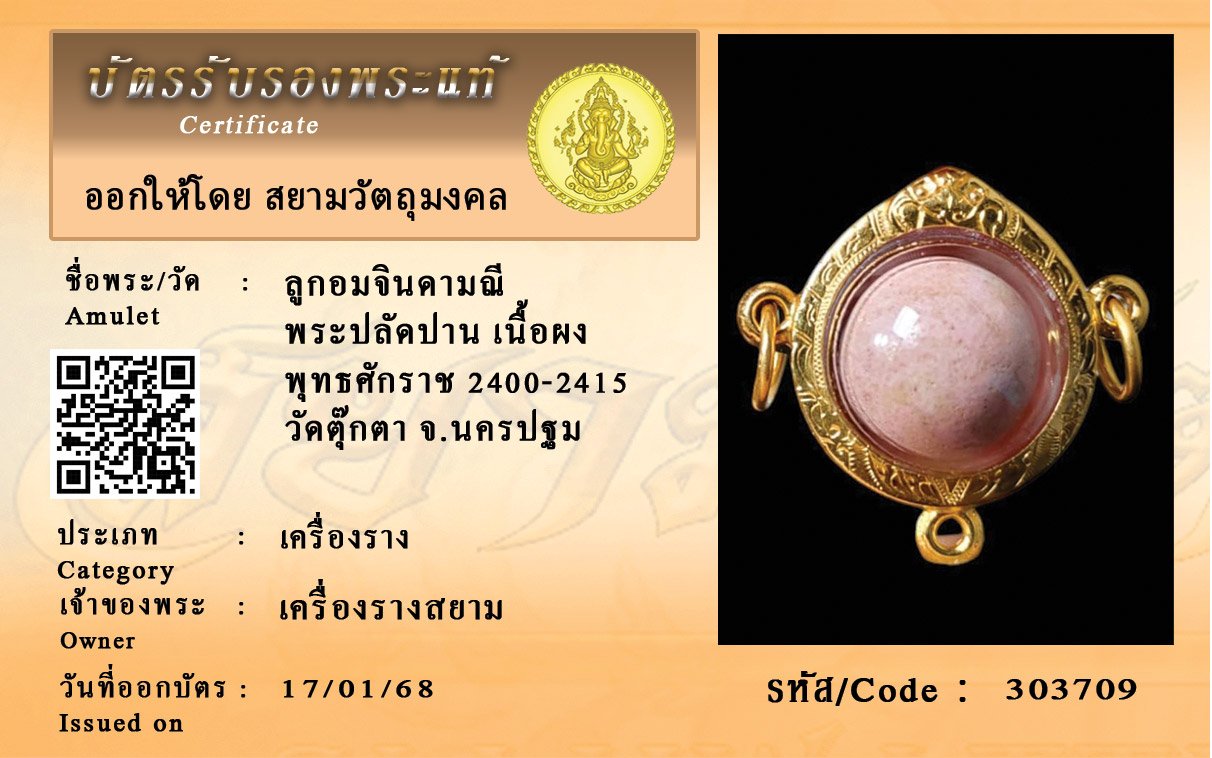 รหัสสินค้า : 303709 ลูกอมจินดามณี พระปลัดปาน เนื้อผง พุทธศักราช 2400-2415 วัดตุ๊กตา จ.นครปฐม