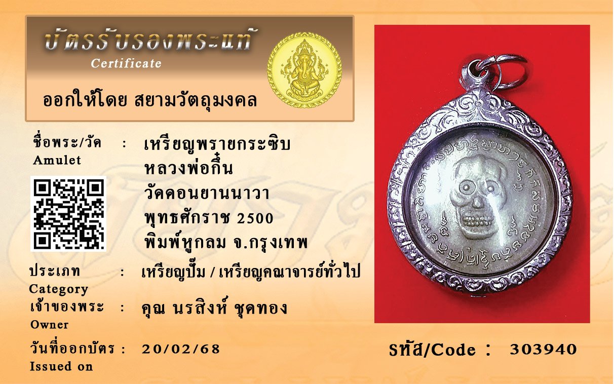 รหัสสินค้า : 303940 เหรียญพรายกระซิบ หลวงพ่อกึ๋น วัดดอนยานนาวา พุทธศักราช 2500 พิมพ์หูกลม จ.กรุงเทพ