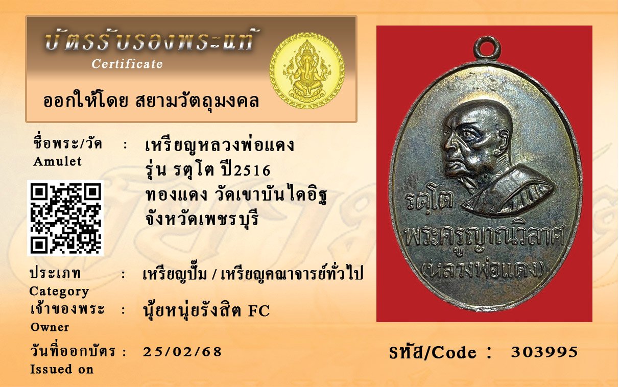 รหัสสินค้า : 303995 เหรียญหลวงพ่อแดง รุ่น รตุโต ปี2516 ทองแดง วัดเขาบันไดอิฐ จังหวัดเพชรบุรี