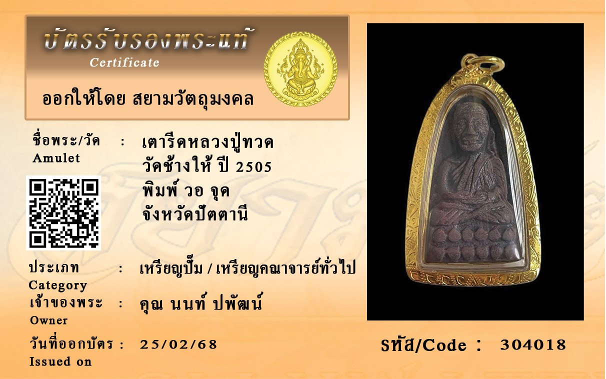 รหัสสินค้า : 304018 เตารีดหลวงปู่ทวด วัดช้างให้ ปี 2505 พิมพ์ วอ จุด จังหวัดปัตตานี