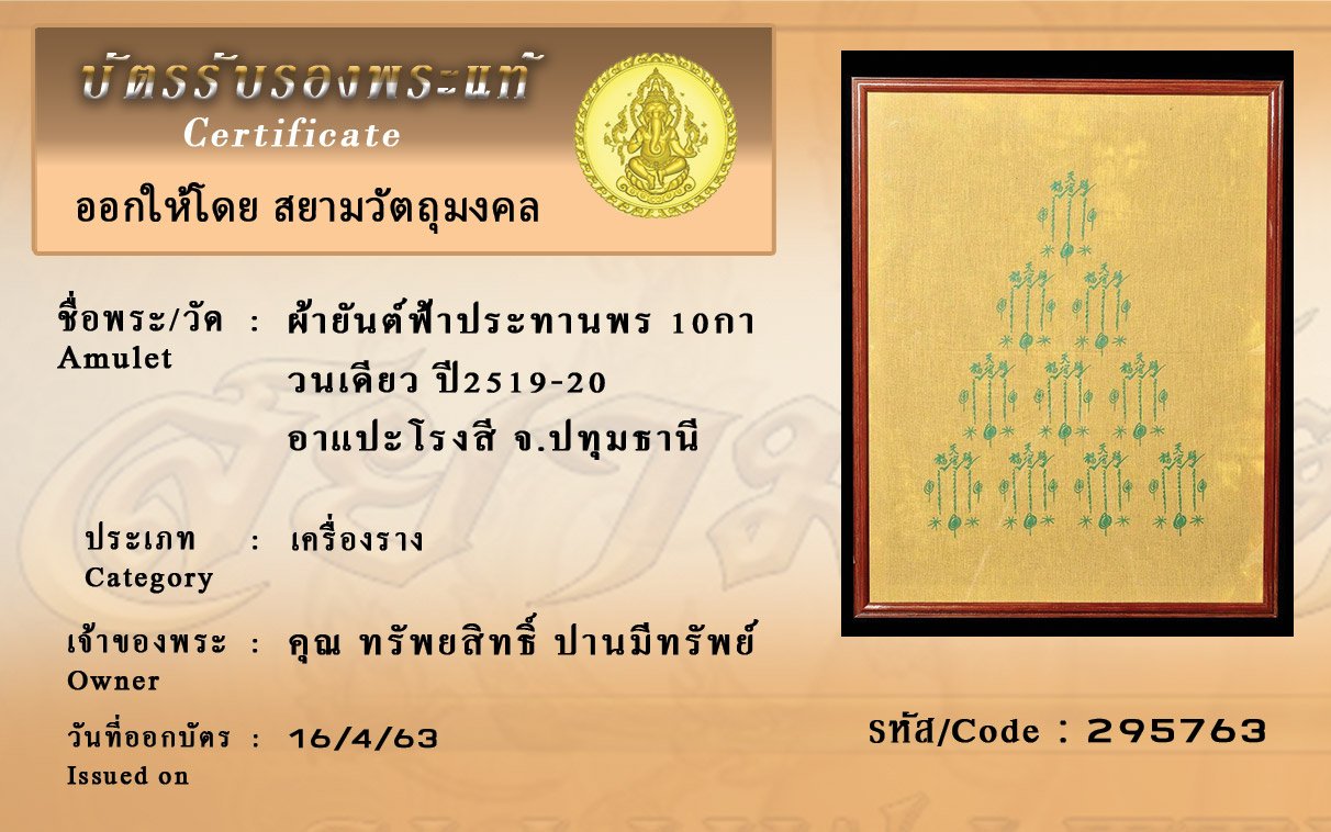 รหัสสินค้า : (295763) ผ้ายันต์ฟ้าประทานพร10กา วนเดียว ปี2519-20อาแปะโรงสี จังหวัดปทุมธานี
