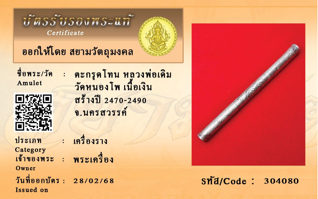 รหัสสินค้า : 304080 ตะกรุดโทน หลวงพ่อเดิม วัดหนองโพ เนื้อเงิน สร้างปี 2470-2490 จ.นครสวรรค์