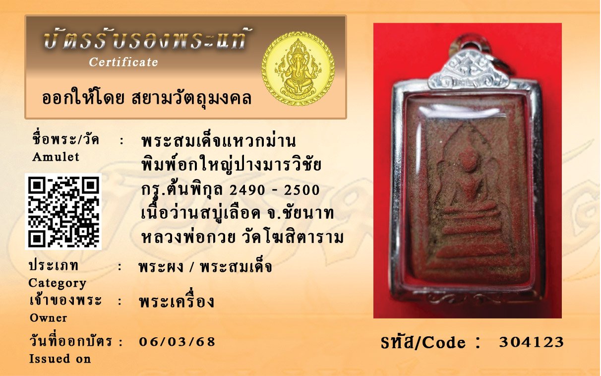 รหัสสินค้า : 304123 พระสมเด็จแหวกม่าน พิมพ์อกใหญ่ปางมารวิชัย กรุ.ต้นพิกุล 2490 - 2500 เนื้อว่านสบู่เลือด จ.ชัยนาท หลวงพ่อกวย วัดโฆสิตาราม