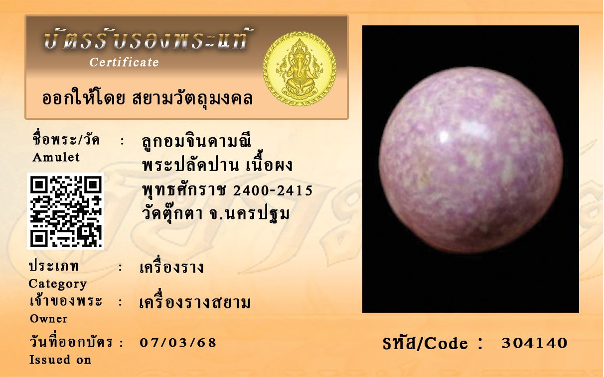 รหัสสินค้า : 304140 ลูกอมจินดามณี พระปลัดปาน เนื้อผง พุทธศักราช 2400-2415 วัดตุ๊กตา จ.นครปฐม