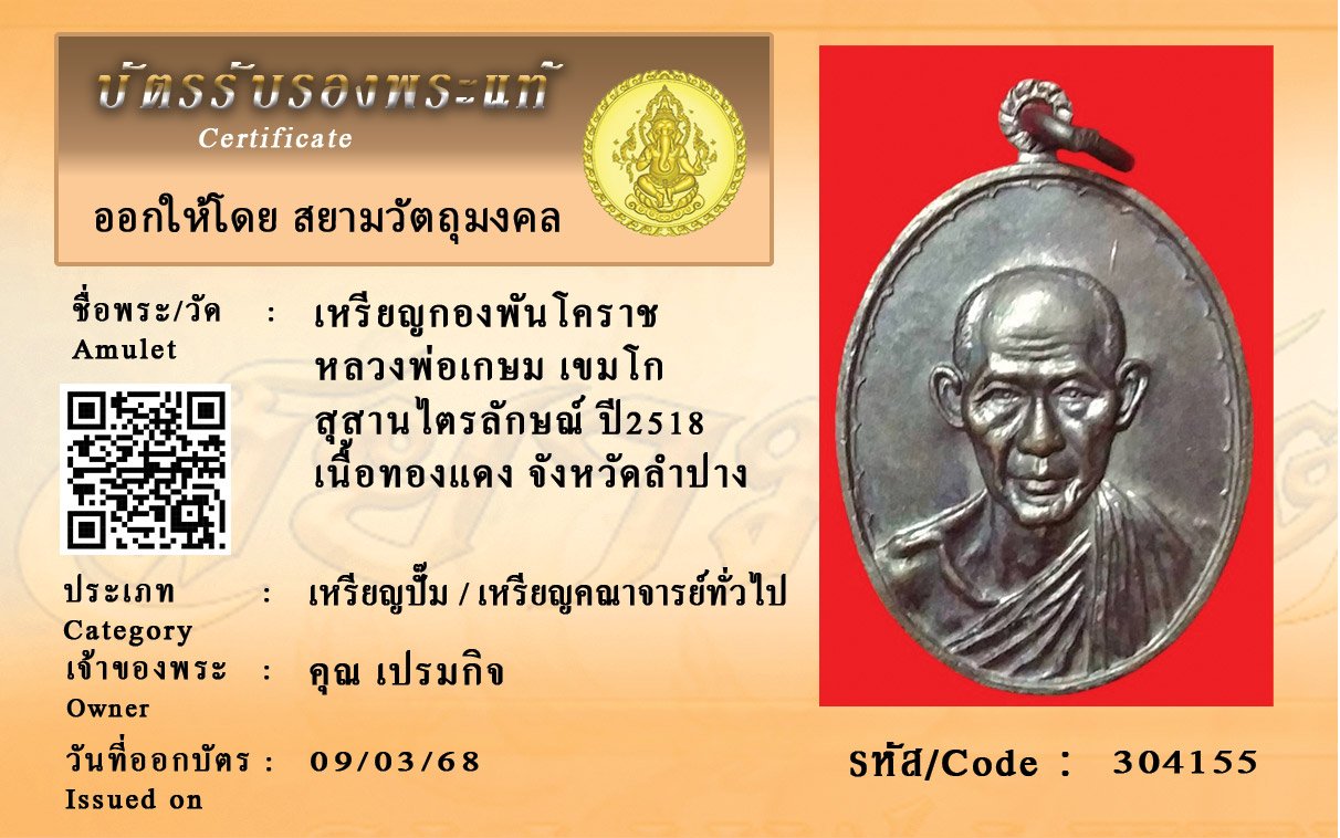 ค้นหาพระ พร้อมบัตรรับรองพระแท้
