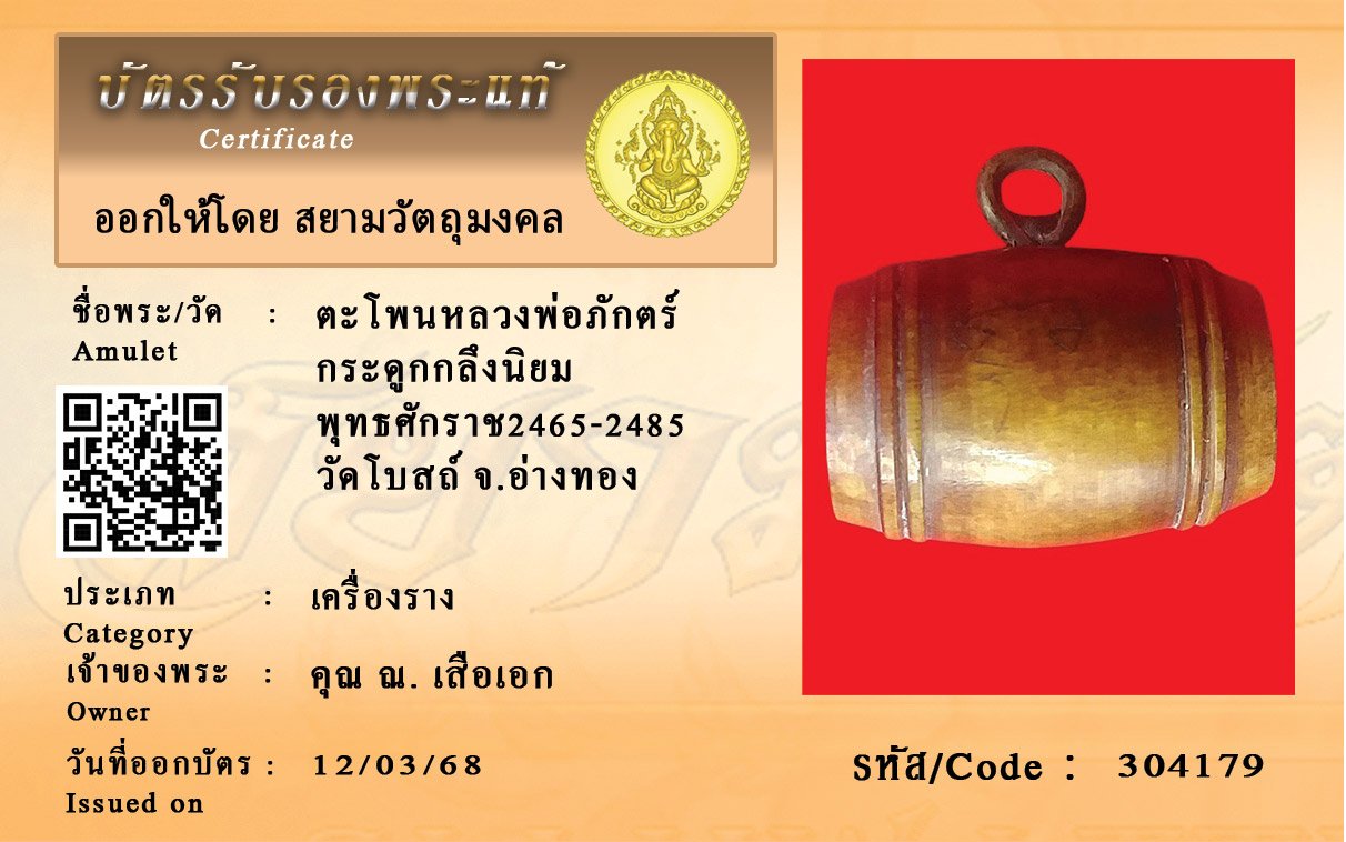 รหัสสินค้า : 304179 ตะโพนหลวงพ่อภักตร์ กระดูกกลึงนิยม พุทธศักราช2465-2485 วัดโบสถ์ จ.อ่างทอง