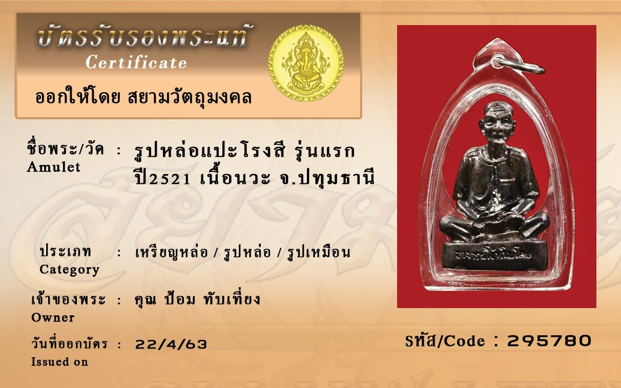 รหัสสินค้า : (295780) รูปหล่อแปะโรงสี รุ่นแรกปี2521 เนื้อนวะ จ.ปทุมธานี